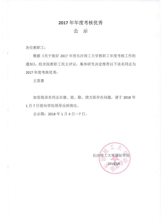 2017年年度考核优秀公示