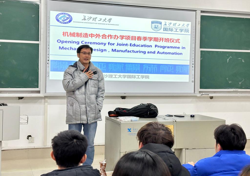3月4日下午,2023-2024季学期中外合作办学项目(机械设计制造及其自动化专业)2022级引进课程Engineering Thermodynamics(工程热力学)在云塘综合教学楼顺利开课。课程由马来亚大学Tan Chou Yong教授承担教学工作。