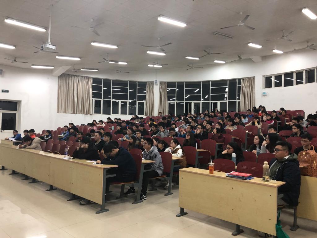 晚上19点,讲座顺利拉开了帷幕。胡彦博老师的讲座主要分为两个部分:考研形势分析与考研必读讲解。其中,主要内容有形势分析、数学政治英语备考指导及学习规划、学习技巧、真题分析。最后,胡老师与在场学生积极互动,就研究生考试中应该注意的问题,与大家交流了意见。在场同学认真听讲,积极交流,受益匪浅,不时响起阵阵掌声。