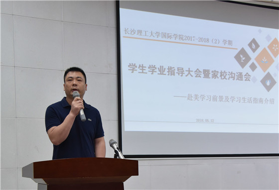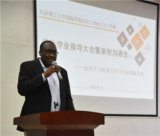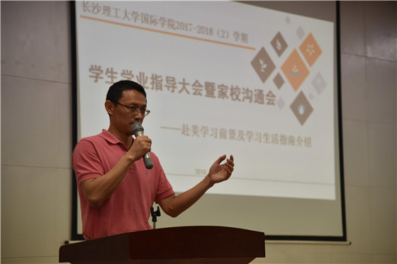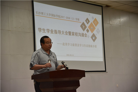 5月14日上午,国际学院2017-2018(2)学期学生学业指导大会暨家校沟通会在云塘校区文科楼圆厅顺利召开。此次会议邀请必赢官网中外合作办学项目(土木工程专业)美方合作院校田纳西大学查塔努加分校工程与计算机科学学院土木工程系教授Ignatius Fomunung,美国田纳西大学诺克思维尔分校教授Huang Baoshan,美国肯尼索州立大学教授Yang Jidong作为主讲嘉宾,就学生赴美学习前景及学习生活指南进行介绍。国际学院院长陈瑜教授、中外合作办学项目办公室主任黄文卫、辅导员唐宏敏和刘森峙,全院学生及30多位家长代表出席了会议。学业指导大会由学院党委副书记兼副院长吴振华主持。