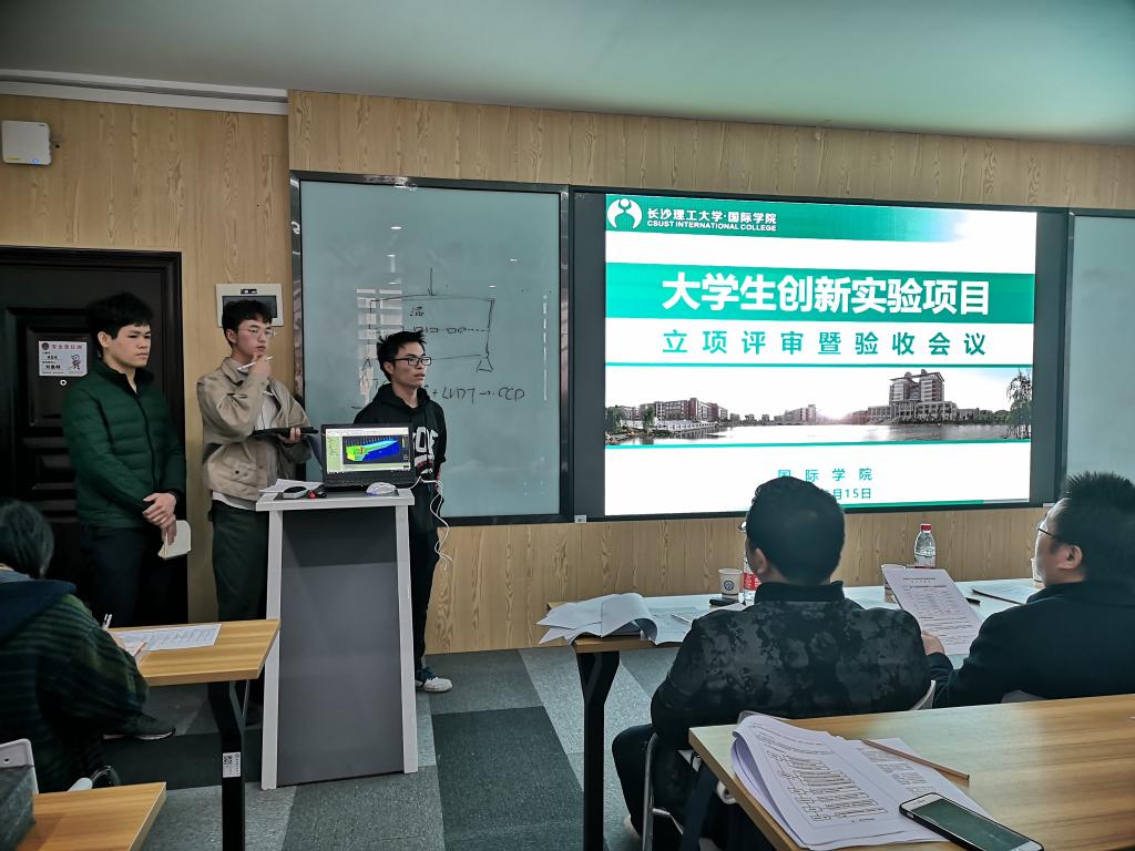 3月15日下午,国际学院大学生创新实验项目立项评审暨检查验收会在云塘校区新能源大楼1号楼404举行。项目评审与验收小组由来自交运、水利学院的何忠明、谌宏伟、向顺成等专家组成。6个大学生创新实验项目参加立项申报答辩,4个项目参加中期检查和结题验收,全院50多名中外合作办项目(土木工程专业)学生与会。会议由专家组组长何忠明教授主持。