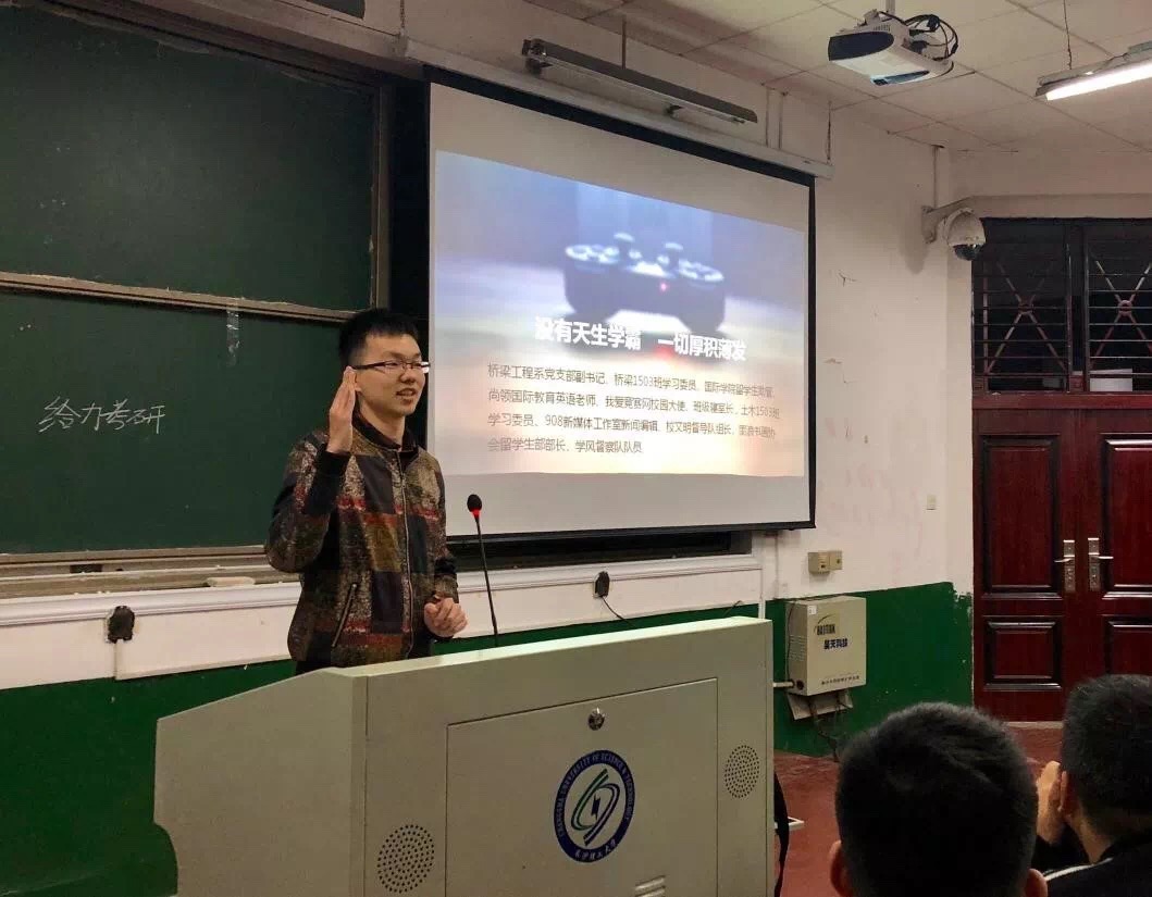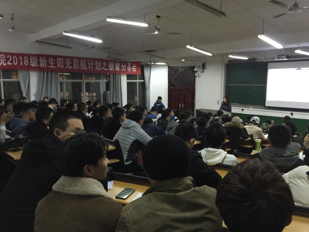 12月3日晚上7点,国际学院2018级新生阳光启航计划之朋辈分享会在金盆岭校区14教1001教室成功举办。本次分享会邀请土木工程学院2015级学生左辉、国际学院2015级学生吴杨书帆、2016级学生汤乐轶夫主讲,内容主要围绕学习方法、科技创新、志愿服务与时间管理等展开。2018级辅导员唐宏敏和全体新生参会。