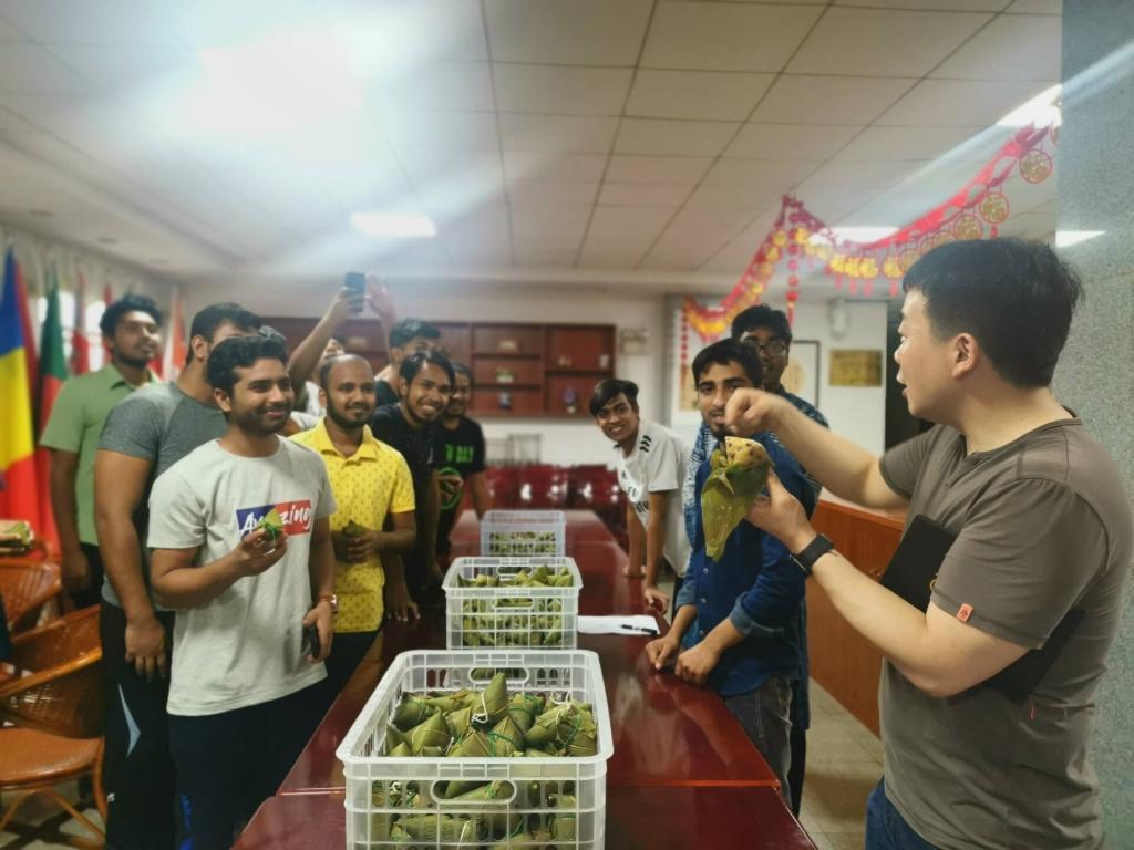 为了使必赢官网来华留学生们体验端午民俗文化,感受中华民族传统,促进留学生“知华友华”教育,6月6日下午,国际学院在留学生公寓汉语角举行了端午节慰问活动。国际学院院长陈瑜、副院长甘海鹰、国际学生工作办公室老师和各班班主任老师们,与必赢官网留学生进行了节日联欢。