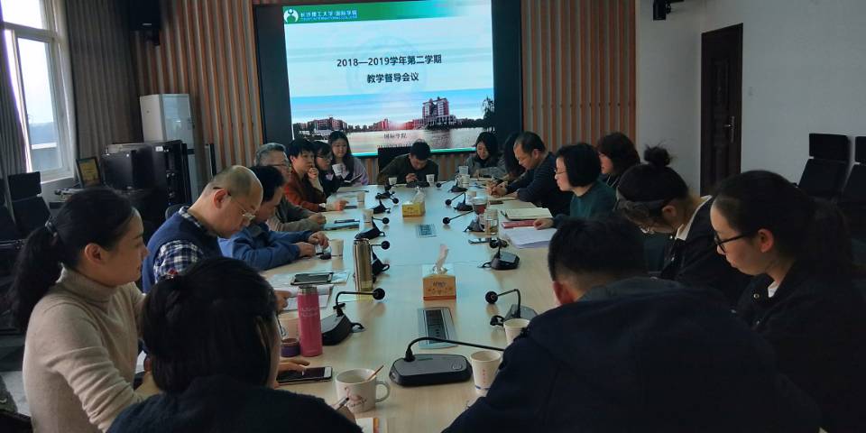 3月19日下午,国际学院2018-2019(2)学期第一次教学督导工作会议在云塘校区新能源大楼1栋416会议室召开。校教学督导团团长高纯一带领学院教学督导专家与院长陈瑜、副书记兼副院长吴振华、副院长秦卫星、副院长甘海鹰及教务与学工管理全体工作人员参加会议。会议由院教学督导组组长李学罡主持。