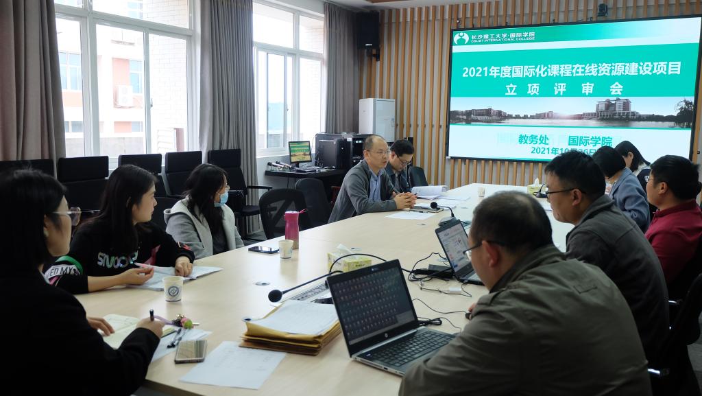 10月26日下午,受教务处委托,国际学院在416会议室组织召开2021年度国际化课程在线资源建设项目立项评审会,来自电气、汽机、计通、数统等学院的7名专业老师参加了答辩。本次评审由信息化建设管理与现代教育中心付强、能源与动力工程学院冯磊华、电气与信息工程学院张静担任专家评委。国际学院副院长秦卫星、中外合作办学教务办公室负责人罗帅参加。