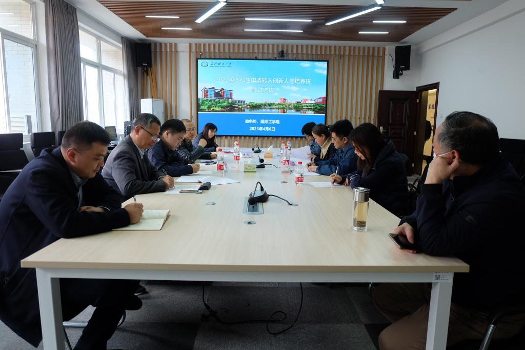 2023年4月6日下午,由教务处副处长蒋菲组织来自教务处、电气、数统、物电、外语、国际等职能部门与教学院的10名专家,召开了2022级创新班转入面试选拔工作会议。本次会议分两组在云塘校区新能源大楼1栋404和416教室同步进行,由教务处副处长邓丰、电气与信息工程学院教授周腊吾分别担任面试专家组组长,对申请转入创新人才培养班初审合格的15名同学进行了现场面试。同学们首先以中英双语进行了精彩的自我介绍,简要陈述了申请转入创新班理由以及未来学业规划。随后专家们从思想道德素质、知识素养、语言表达能力、分析解决问题能力、社会实践经验、创新精神与能力、专业发展规划等方面对学生进行综合评价,以百分制给出面试成绩。经转专业领导小组讨论,确定拟录取学生名单,并完成了学院官网公示及材料上报等系列工作。3位来自数统、电气、国际(土木创新班)3个学院的2022级优秀本科生最终获得入选电气工程及其自动化创新人才培养班学习资格。
