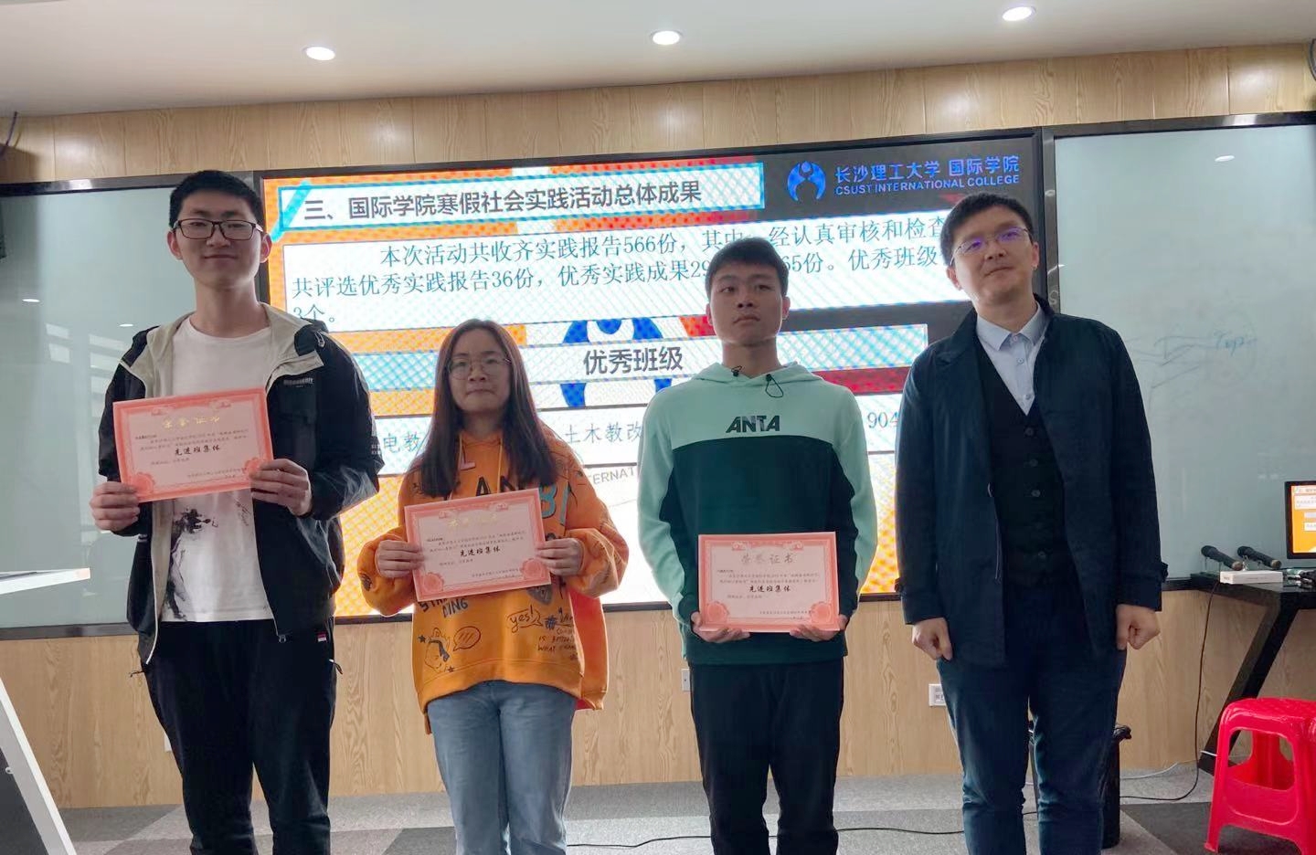 首先,国际学院实践部部长肖翼邦向全体师生汇报了此次寒假社会实践的成果。此次寒假社会实践共收齐实践报告566份,共评选优秀实践报告36份,优秀实践成果29份。在ABCDE五大类评优中,评选出A类思想提升和价值引领实践先进个人13名、B类学习交流和语言能力实践先进个人15名、C类创新创业与职业素养实践先进个人14名、D类文化体育与身心发展实践先进个人14名、E类社会实践与养成教育实践先进个人9名,综合评比优秀个人17人,先进班集体3个。