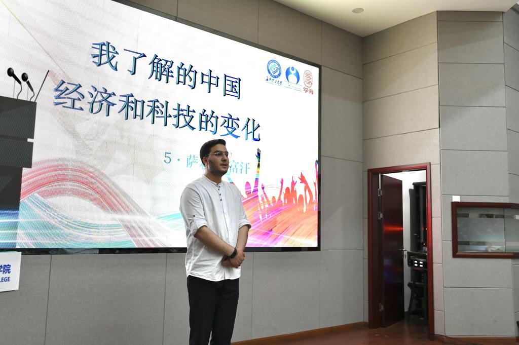 中文赛道中,6名留学生选手用汉语分享与中国的美丽邂逅,从政治、经济、文化、社会、生态文明等多个视角,讲述他们通过老电影、网络媒体所认识的旧中国与现在拥有高铁、移动支付的新中国,将自己在华留学期间,中国发生的改变及取得的历史性成就娓娓道来。他们用真挚的感情描绘他们眼中的中国,用生动活泼演讲风格赢得了现场观众的阵阵掌声。“我在电视里看到的100年前的中国是贫穷落后的,百年后的今天,中国已经从低谷走向富强。因为中国交通的发展的举世瞩目,来自不同国家的学生,慕名前来学习中国的技术。”来自肯尼亚的留学生李元舟用流利的汉语分享了自己来华留学2年以来的故事。“我希望还有更多的外国人来领略神秘的东方大国风采,他们一定会爱上中国”来自老挝的留学生王思晨发自内心地感慨道。在情景表演环节,留学生们演绎了中国古典故事、歌曲,展示有中国特色、体现中国精神、蕴藏中国智慧的优秀文化。