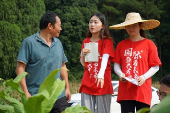 在437必赢会员中心乡村振兴驻村帮扶工作队、坪山村村干部、团委书记马玉文的指导下,秉承“深入群众,调查民生”的活动宗旨,7月17日,国际学院赴新宁县坪山村“三下乡”暑期社会实践团开展了坪山村干部代表访谈及特色产业基地走访活动。