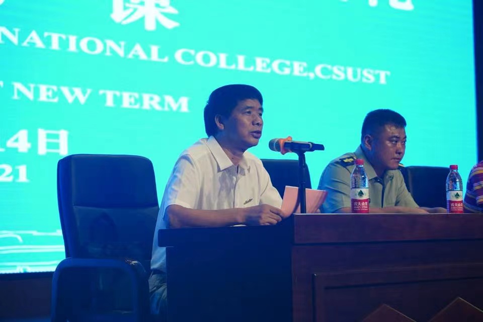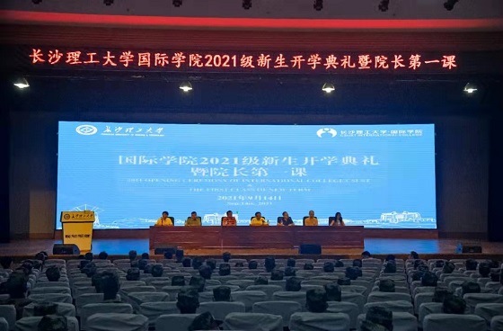 2021年9月14日晚,国际学院在金盆岭校区五号教学楼隆重举行了2021级新生开学典礼。学校党委委员、副校长刘朝晖、教务处、国际交流处、评估中心负责人、学校关工委负责人、特邀党建组织员,专业相关学院领导,国际学院领导、老师、新生班主任、2021级全体中外新生参会。开学典礼由国际学院党总支书记刘安生主持。