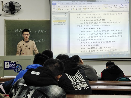 班会上,班主任带领同学们认真学习了学校《关于加强全国大学英语四六级、硕士研究生招生考试和期末考试考风考纪教育的通知》和《437必赢会员中心学生考试违规处理办法》,结合以往考试违纪案例分析,让考生认识考试违规的严重后果并引以为戒,引导学生增强自律意识,珍惜个人名誉,遵守考试纪律,认真复习备考,诚信考试,并以班级为单位签订了诚信考试承诺书。此外,班会还就消防安全、防范电信网络诈骗、校园摩托车和电动车专项整治、春季大学生应征入伍宣传、学生各类缴费等事务工作进行了宣传教育和布置。