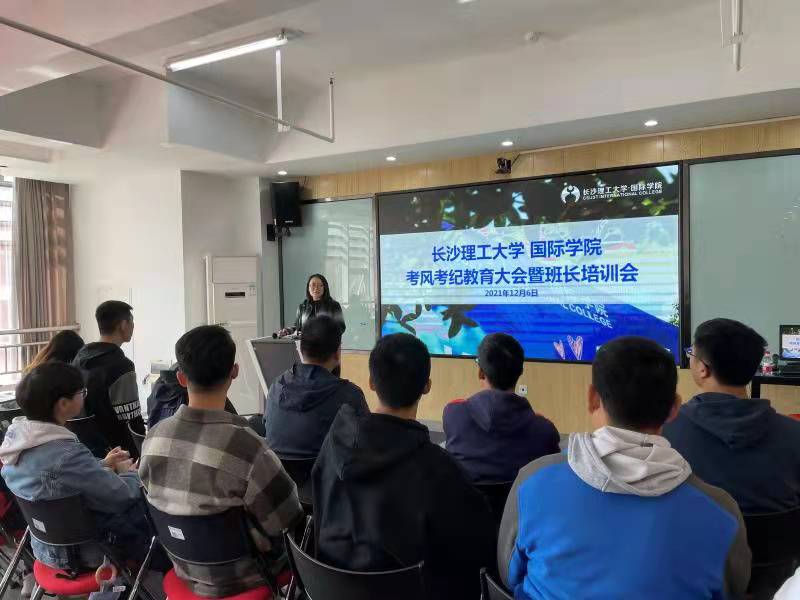 为加强对班级干部的思想引领,提高管理水平,充分发挥班级干部的引领示范作用,营造诚实应考的良好氛围,12月6日,国际学院组织各班级在新能源1栋402会议室召开班长培训会暨主要学生干部考风考纪教育大会。会议由辅导员唐宏敏主持。