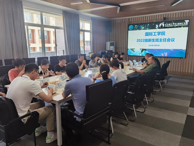 8月26日下午,国际工学院在新能源大楼1栋416召开2022级新生班主任工作会议。院长吴迪龙、特邀党建组织员李争流、副院长秦卫星以及2022级新生班主任和辅导员参加会议。会议由辅导员马玉文主持。