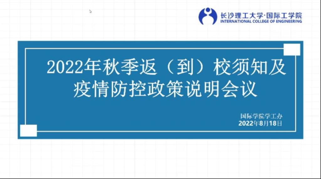 为了让学生更加深刻了解当下疫情防控政策,提高自我防范意识,引导学生主动防控、科学防控,让新生知晓到校前需要准备的事项,2022年8月18日上午,国际工学院召开2022年秋季返(到)校疫情防控线上会议。学院学工办全体辅导员、学院全体学生参会,会议由学工办唐宏敏主持。