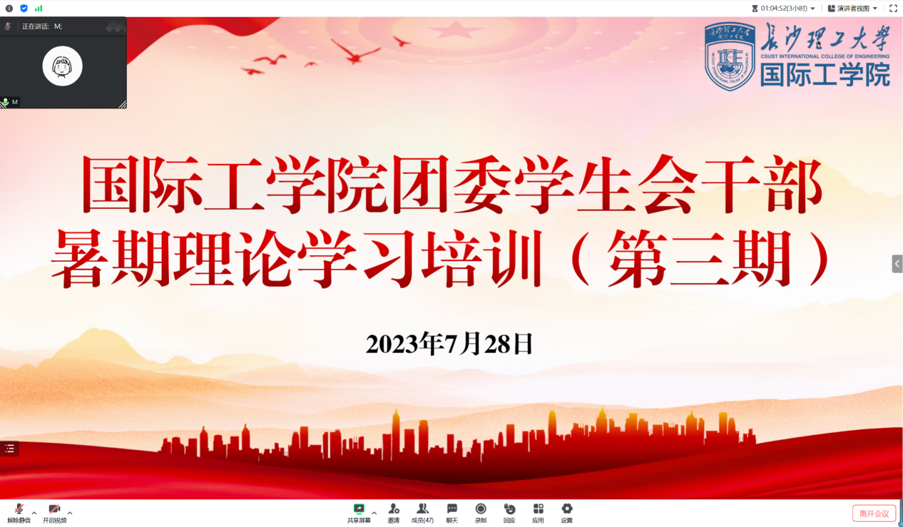 7月中下旬,国际工学院组织开展了学生干部暑期理论学习提升训练营,先后组织3期学生干部线上理论学习培训。国际工学院团委书记马玉文、全体团委学生会成员参与此次培训。