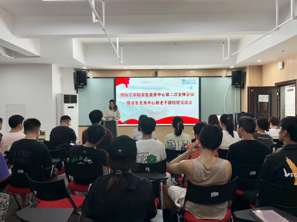 9月11日晚,国际工学院学生党务中心在新能源大楼1栋402报告厅召开了第二次全体会议暨学生党务工作新老干部经验交流会,学工办辅导员代表及学生党务中心全体成员参会。