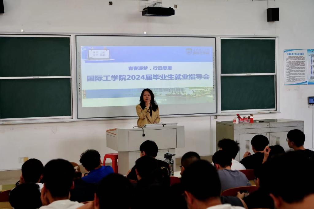 4月23日,国际工学院在云塘校区云综教B-202召开2024届毕业生就业指导会。学院党委副书记兼副院长乔法光、毕业年级辅导员唐宏敏以及2024届全体毕业生参