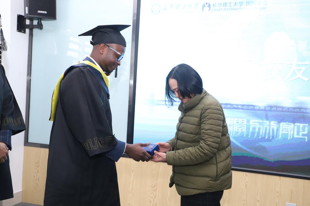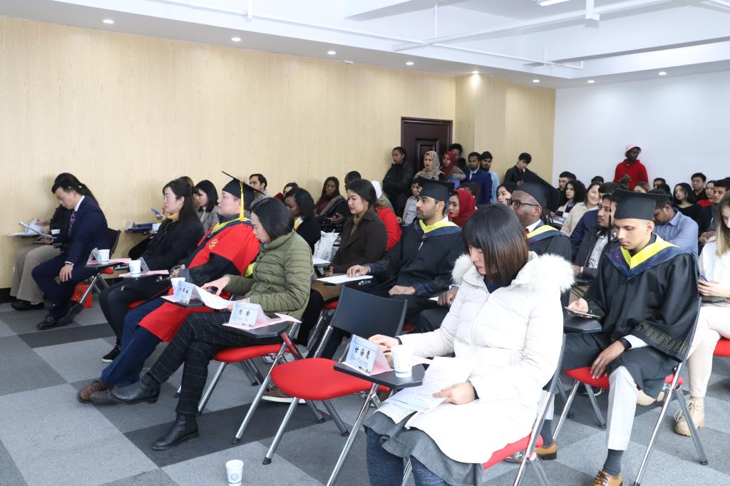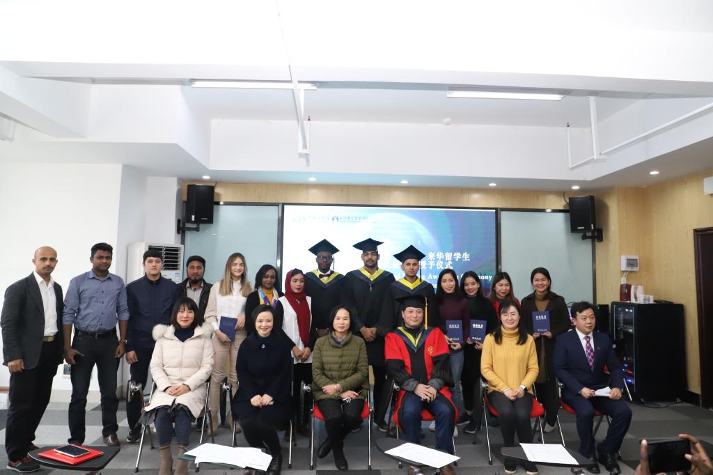 1月7日下午,必赢官网2020届(春)来华留学生毕(结)业典礼暨学位授予仪式在国际学院举行。校党委委员兼国际学院党总支书记付嫦娥、国际学院院长陈瑜、土木学院副院长肖勇刚、国际学院副院长甘海鹰、国际学院学习与发展中心负责人汤路,以及国际学生工作办公室全体老师出席了典礼。典礼由国际学生工作办公室负责人王荟惠主持。