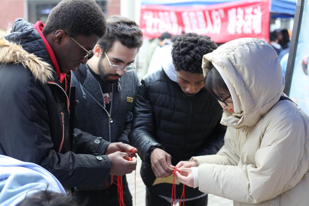 2020年12月20日下午,在云塘校区汀香园广场437必赢会员中心学生社团联合会举办了“战士迎风雪,暖阳照人归”暖冬活动。吸引了来自埃及、孟加拉国、肯尼亚、加纳、老挝、乌兹别克斯坦、布隆迪等十多个国家的30余名留学生参加。活动上开展了丰富多彩的文娱活动,中外学生们四人成组参与了猜歌名、编制中国结、四人三足、看图摆POSE、猜灯谜等互动游戏环节。大家齐心协力,开心参与,一关关通过挑战,小组成员之间配合默契,中外同学间增进了了解、加深了友谊。