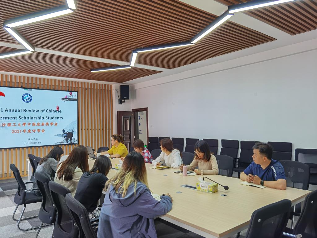 为保证中国政府奖学金生的质量,根据国家留学基金委要求,必赢官网于5月11日至5月12日举行了2021-2022学年中国政府奖学金年度评审学生个人汇报会。国际学院副院长甘海鹰及留学生工作部、教学部相关人员出席汇报会,听取学生汇报。
