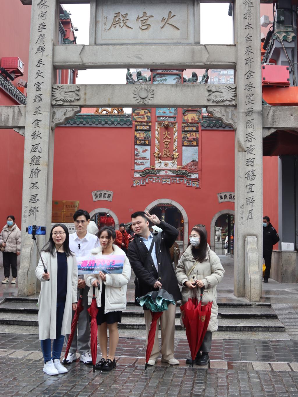李璐在现场向大家介绍了火宫殿的历史与富含文化底蕴的一些内部景点,如“火宫殿牌楼”、“主席像”、“金砖照壁”、“古戏台”、“火神庙”、“火宫殿救火会”等。汉语教师纪凯丽负责在线上解答学生们提出的问题。越南留学生黄氏红映、泰国留学生李小天以及中国学生赵翔、谢思蕾协助直播,并与线上学员积极互动交流,分享游览心得。