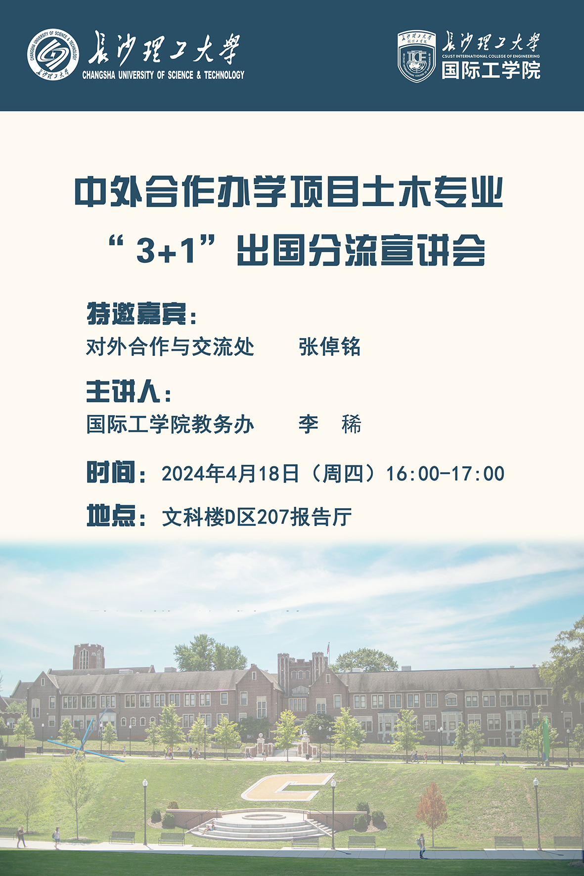 中外合作办学项目土木专业“3+1”出国分流宣讲会活动预告