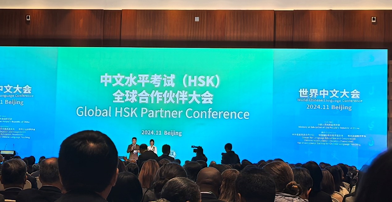 2024年11月15日至17日,437必赢会员中心HSK考点负责人孙夕珺和国际工学院汉语教师纪凯丽参加了在北京举行的2024世界中文大会。此次大会由中华人民共和国教育部主办,中外语言交流合作中心、中国国际中文教育基金会、世界汉语教学学会共同承办,主题为“联通融合,传承创新”,旨在促进全球中文教育的发展,加强中外语言文化交流合作。