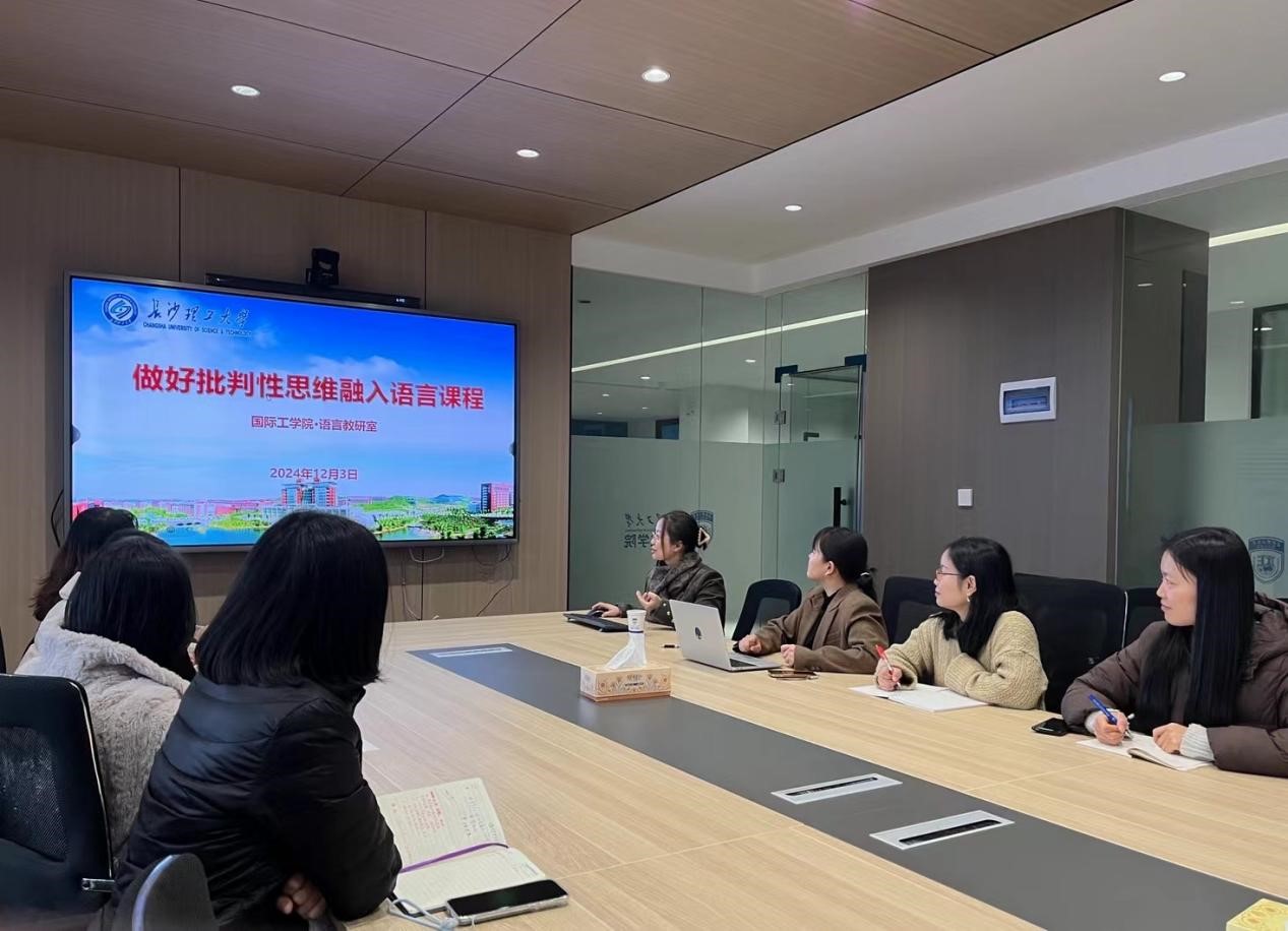 12月3日下午,国际工学院语言教研室召开“批判性思维融入语言课程”研讨会。会议由教研室主任李欣璐主持,对外汉语、雅思英语课程组全体教师参加。会上,语言教师就如何将批判性和创新性思维融入教学展开了深入探讨。