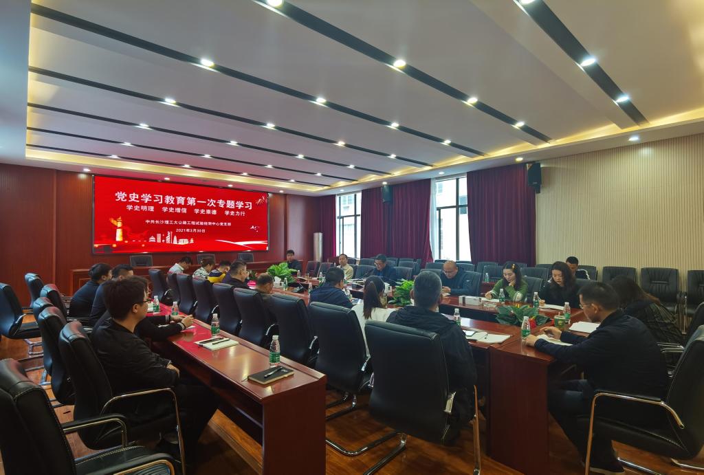 3月30日上午,长沙理工大公路工程试验检测中心党支部在中心二楼会议室开展党史学习教育第一次专题学习研讨。会议围绕“学史明理”这一主题,深入学习贯彻习近平总书记在党史学习教育动员大会上的重要讲话精神,开展党史教育和初心洗礼。检测中心党支部书记任宇主持会议并进行领学,支部全体党员、发展对象及入党积极分子认真学习研讨。会上深入研读了毛泽东《(共产党人)发刊词》(《毛泽东选集》第2卷)、《改造我们的学习》(...