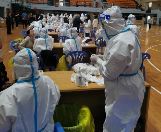 3月29日,金盆岭校区组织进行了全员核酸检测,公司职工响应号召,积极参与志愿服务,配合医护人员进行扫码登记和样本采集等工作。