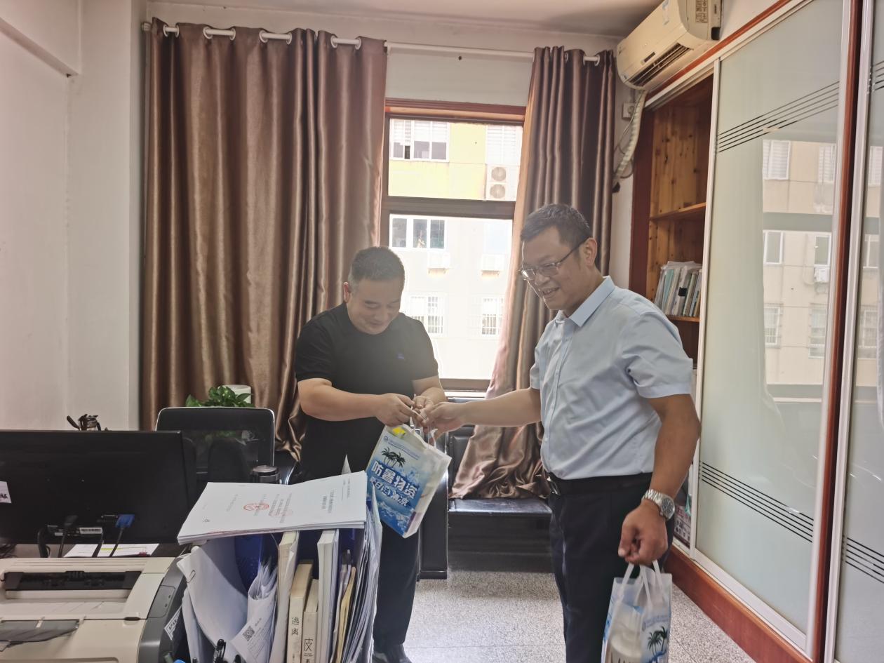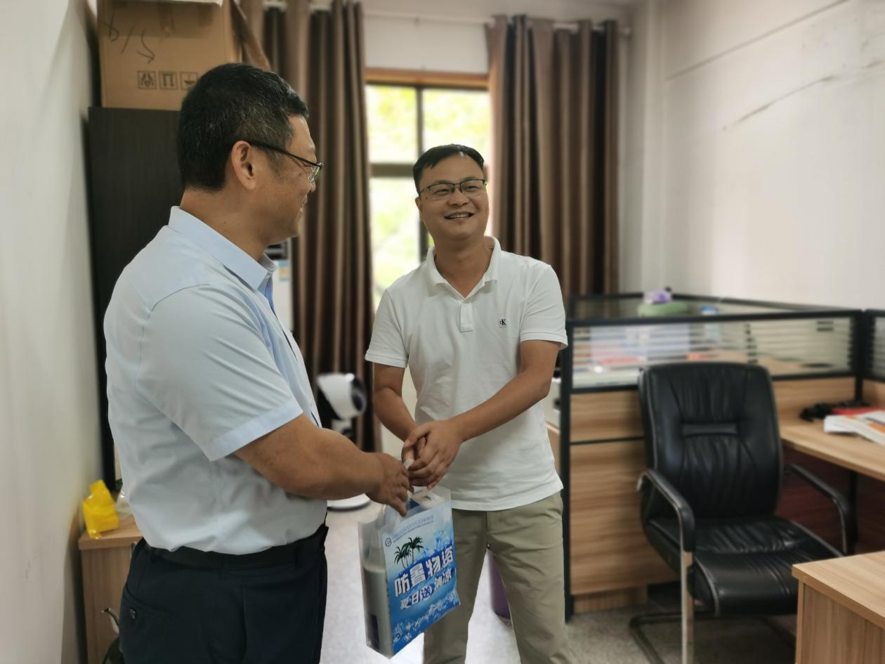 8月14日,夏日炎炎,热浪滚滚。检测公司总经理任宇带队深入公司各部门、市内项目组开展夏季送清凉活动,看望慰问坚守工作岗位的一线职工,把清凉解暑物资送到职工手中,把公司党支部、工会的关心关爱送到职工心坎上。
