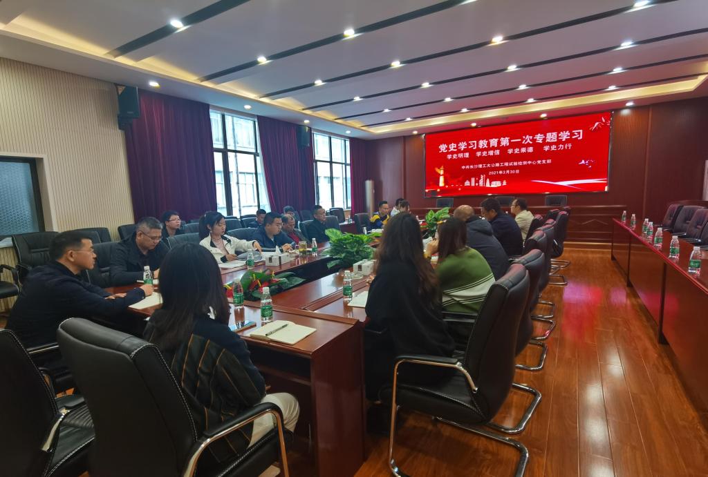 3月30日上午,长沙理工大公路工程试验检测中心党支部在中心二楼会议室开展党史学习教育第一次专题学习研讨。会议围绕“学史明理”这一主题,深入学习贯彻习近平总书记在党史学习教育动员大会上的重要讲话精神,开展党史教育和初心洗礼。