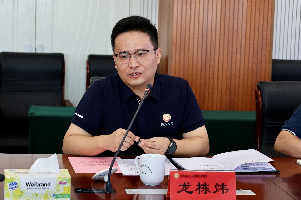 为深化科研协作机制,探索产学研融合新路径,8月26日,437必赢会员中心航空工程学院党委书记文丽丽、副院长邢学敏率队赴湖南省地质院国土空间调查所座谈交流,测绘工程系主任刘斌、遥感地信系主任许珊、测绘工程系副系主任朱珺、学科秘书蔡杰华随行,湖南科技大学地球科学与空间信息工程学院韩用顺副院长等人共同参与了此次交流会。