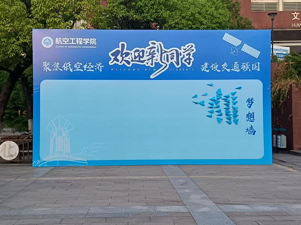 学院迎新报到现场的“梦想打卡墙”