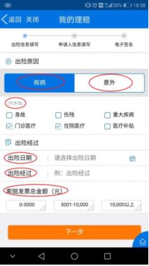 3.根据提示填写出险信息,确保真实无误。