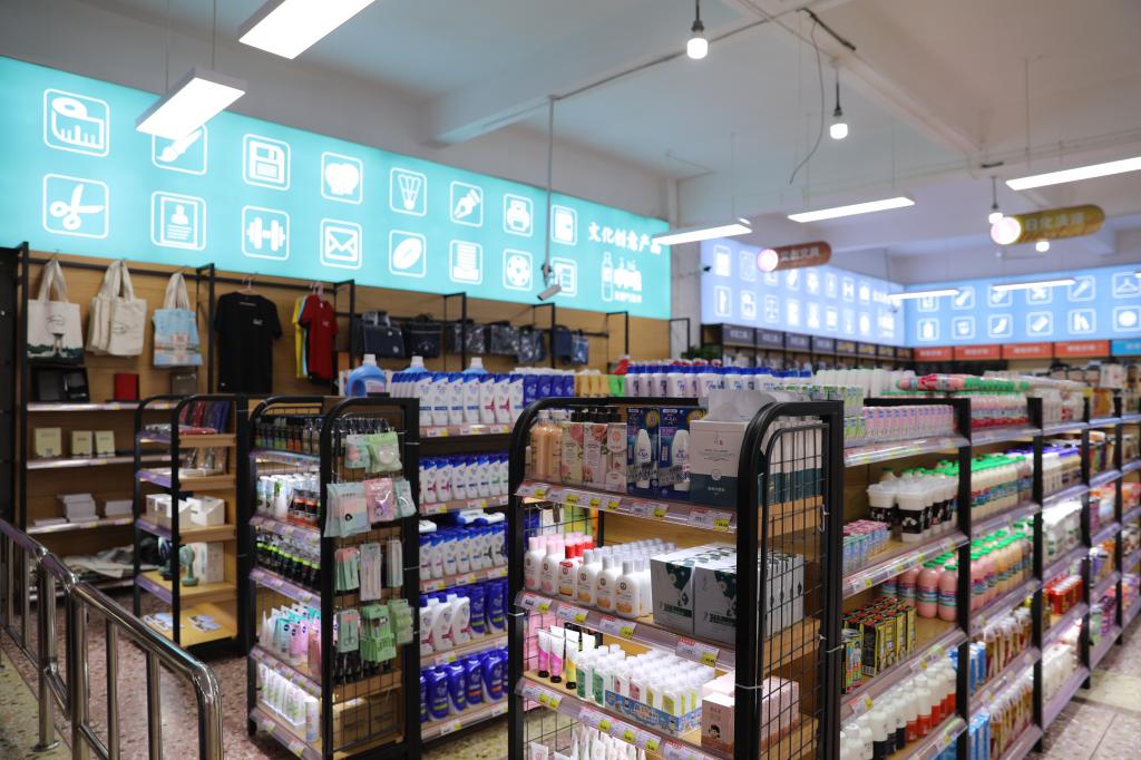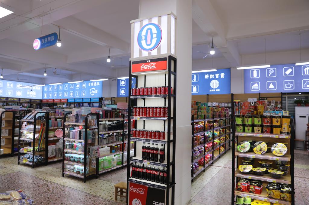 商品的摆放也重新进行了分类归纳,设置了新的发光指示牌,还根据师生需求引进了大量新款商品。