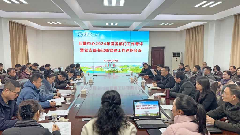 1月8日下午,后勤中心2024年度各部门工作考评暨党支部书记抓党建工作述职会议在云塘校区节能平台会议室举行。中心党委书记王学成主持会议,中心全体班子成员、各部门副职及以上人员和职工代表50余人参加。