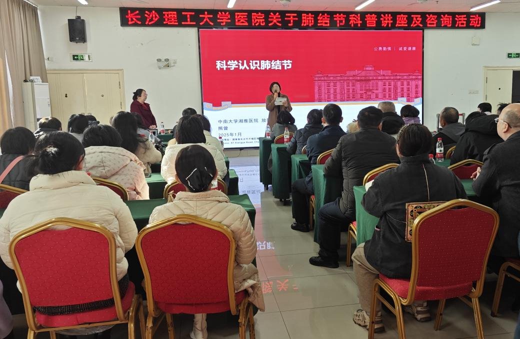 为进一步普及肺部健康知识,1月6日,校医院肺结节科普讲座在云塘校区医院举行。本次讲座由中南湘雅医院肺结节领域权威专家熊曾教授主讲,校医院副院长王楠主持。教职工代表、校医院工作人员共100余人参加讲座。