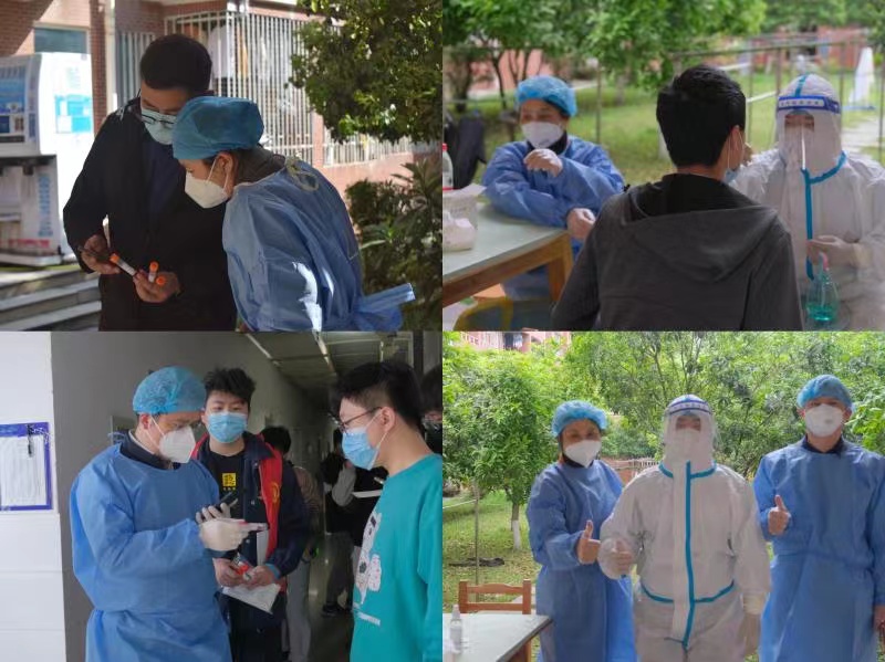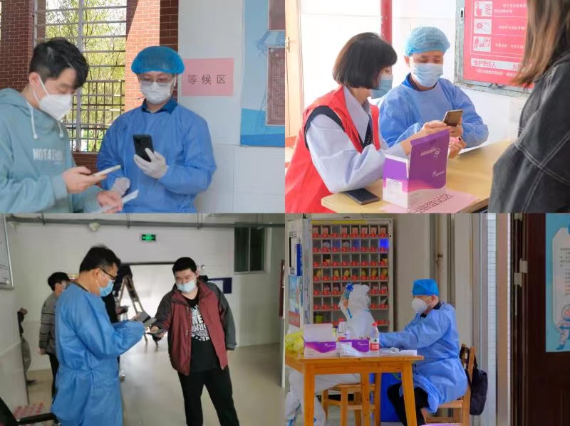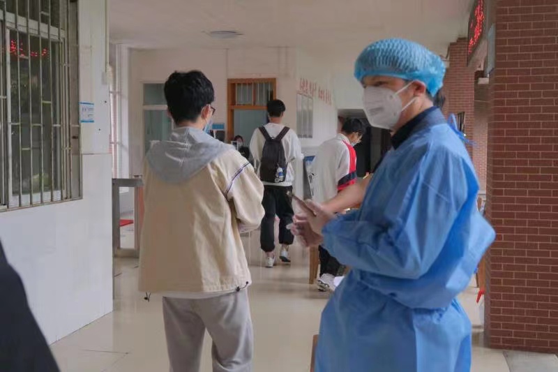 我院参与核酸检测志愿服务的老师中年纪最大的是59岁的张玲老师,她特有的亲和力、严谨的作风赢得了师生的一致好评,用实际行动诠释着“疫情不走,党员不退”的神圣誓言。