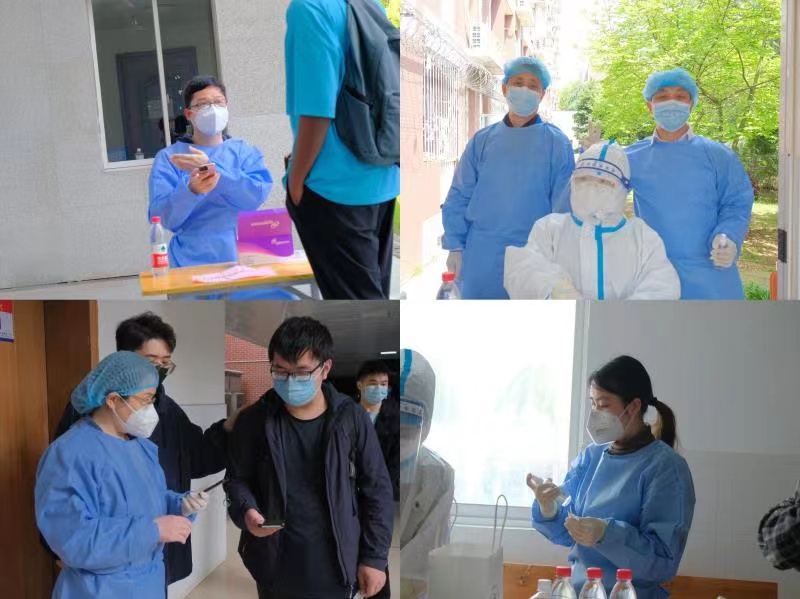 图5 学院部分老师在学生宿舍协助核酸检测工作