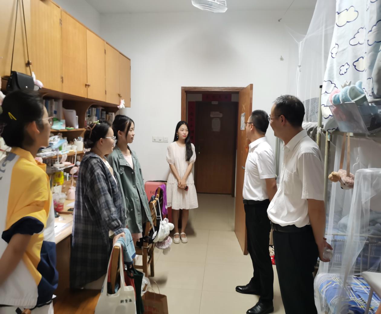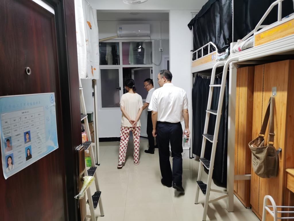 2022年秋季学期开学一个月以来,为全面了解学生到校情况及开学状态,准确把握返校生的学习与生活状况,帮助学生调整心态尽快融入新学期、新阶段。2022年10月1日晚,化学化工学院宋刘斌书记、陈启杰副院长及助理辅导员曾雄灿走访了我院本科生、研究生女生宿舍,表达了院领导对学生学习生活的关心和对安全工作的重视。