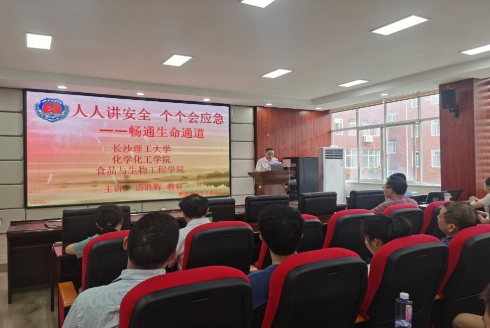 为进一步提升师生防灾减灾意识,增强应急处理能力,确保学院教学与科研活动的安全有序进行.2024年5月28日下午,我院在工科三号楼A320会议室成功举办了防灾减灾安全知识讲座,活动邀请湖南胜消消防的唐胜辉教官主讲,学院近100名师生代表参与了此次活动。本次活动由化学化工学院副院长陈启杰主持。
