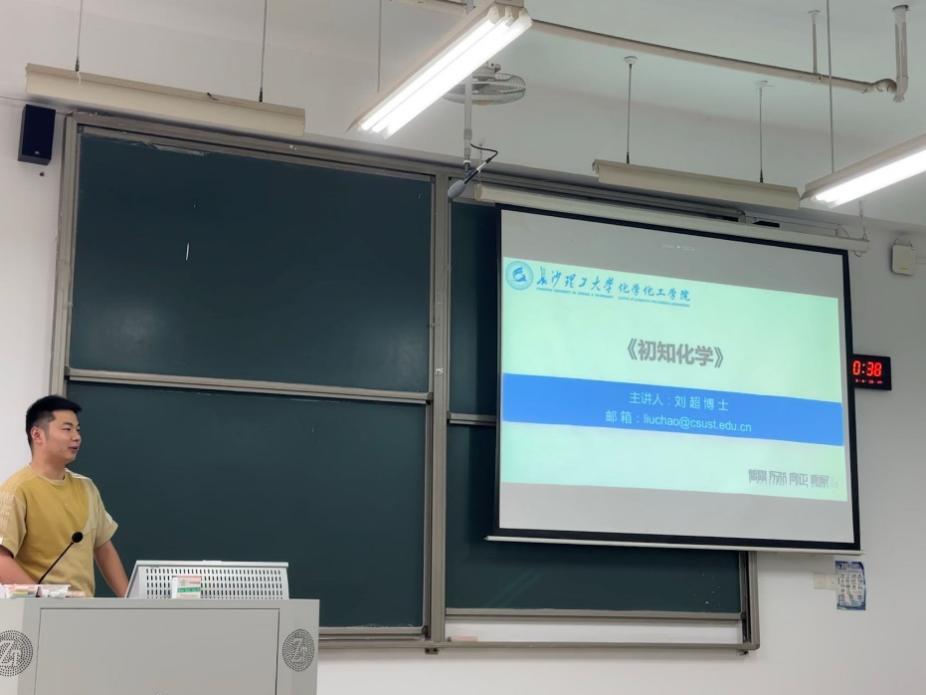 2024年4月16日下午三点,化学化工学院刘超博士在云工三B209开展了题为“初知化学”的通识教育讲座报告,2023级学院本科新生及其他年级等同学聆听了讲座。