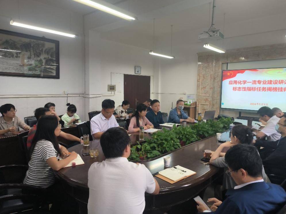 5月9日下午,为了促进应用化学专业的高质量建设,化学化工学院召开了应用化学国家一流专业建设推进专题研讨会,参会人员包括学院党委书记宋刘斌、院长张跃飞、副院长卿志和和喻林萍、应用化学系全体教师、学院其它系系主任,特别邀请了退休教师周艺教授和朱志平教授莅临指导,会议由副院长喻林萍主持。会议中各位资深教授和有经验的骨干教师们探讨了关于应用化学未来的发展方向,吸取以往发展经验,找寻其中存在的不足,明确未来重点建设目标,并提出具体举措。