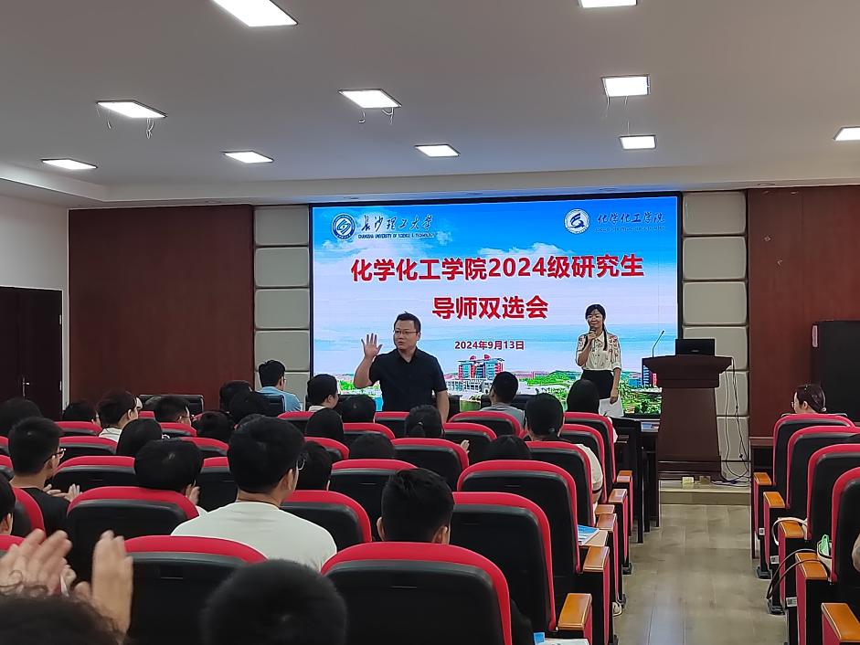 2024年9月13日下午3点,化学化工学院2024级研究生导师双选会在工科三号楼 A-320报告厅举行,会议由副院长喻林萍主持,20余名研究生导师及2024级全体研究生新生参加了此次会议。