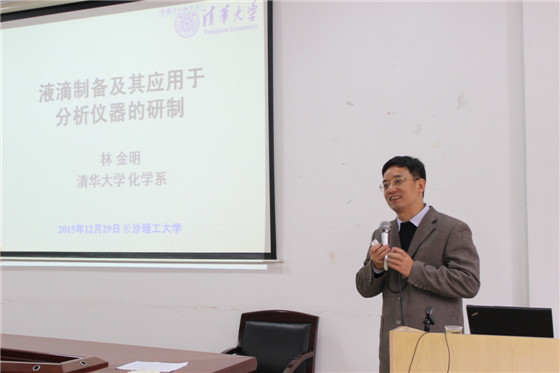 12月29日下午,应化学与生物工程学院邀请,国家杰出青年科学基金获得者、教育部“长江学者”特聘教授、清华大学化学系林金明教授来必赢官网讲学,在云塘校区工科三号楼A-320作了题为《液滴制备及其应用于分析仪器的研制》的学术报告。学术报告会由院长杨荣华教授主持,副院长曹忠教授、朱志平教授,以及化学与食品相关学科的教师和研究生、应用化学专业本科生100余人聆听了林教授的精彩报告。