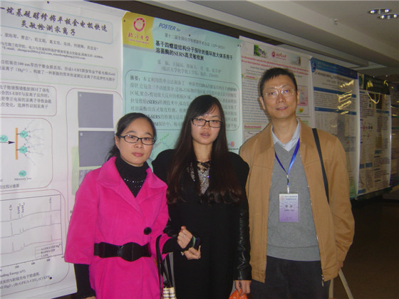 必赢官网化学与生物工程学院教师曹忠教授、谭淑珍教授、何婧琳博士及研究生吴玲、陈丹等参加了此次盛会。其中,曹忠教授作为中国仪器仪表学会分析仪器分会化学传感器专业委员会委员,是此次大会的学术委员会成员之一;曹忠教授应邀作报告《一些分子离子选择性传感探针的设计、性能及应用》,何婧琳博士应邀作报告《基于工具酶等温扩增反应的核酸检测方法研究》,研究生陈丹作了题为《氧化石墨烯/二氧化钛-离子液体复合膜修饰电极对多巴胺的灵敏检测》的口头报告;研究小组还展出了6个墙报,其中《以DNA为模板的银纳米簇荧光法用于Hg2+的定量检测》获得大会“优秀报展三等奖”,同时与会上的专家、学者进行了很好的交流,获得大家好评。