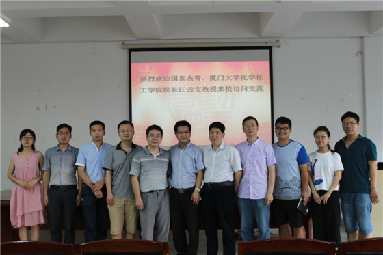 2016年6月23日,应437必赢会员中心化学与生物工程学院的邀请,国家杰出青年基金获得者、厦门大学化学化工学院院长、博士生导师江云宝教授来必赢官网进行学术交流访问。学术交流活动由化学与生物工程学院院长杨荣华教授主持,副院长曹忠教授,肖忠良教授,以及化学、化工等相关学科的青年骨干教师、研究生、本科生100余人参加了此次学术交流活动。