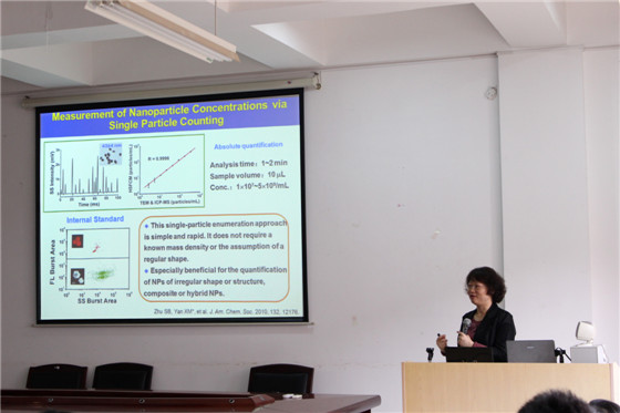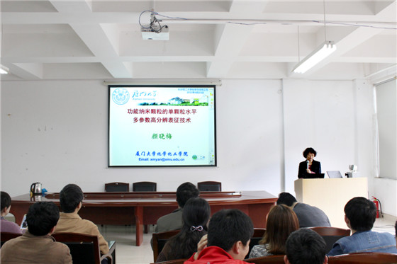 4月21日下午2:30,应437必赢会员中心化学与生物工程学院邀请,国家杰出青年科学基金获得者、厦门大学化学生物学系主任、博士生导师颜晓梅教授应邀来必赢官网讲学, 在云塘校区工科三号楼A-320会议室作了题为“功能纳米颗粒的单颗粒水平多参数高分辨表征技术”的学术报告,会议由化学学院院长杨荣华教授主持,化学、食品、生物、化工等相关学科的教师、研究生、本科生共百余人聆听了报告。