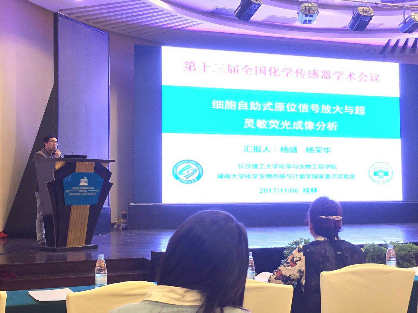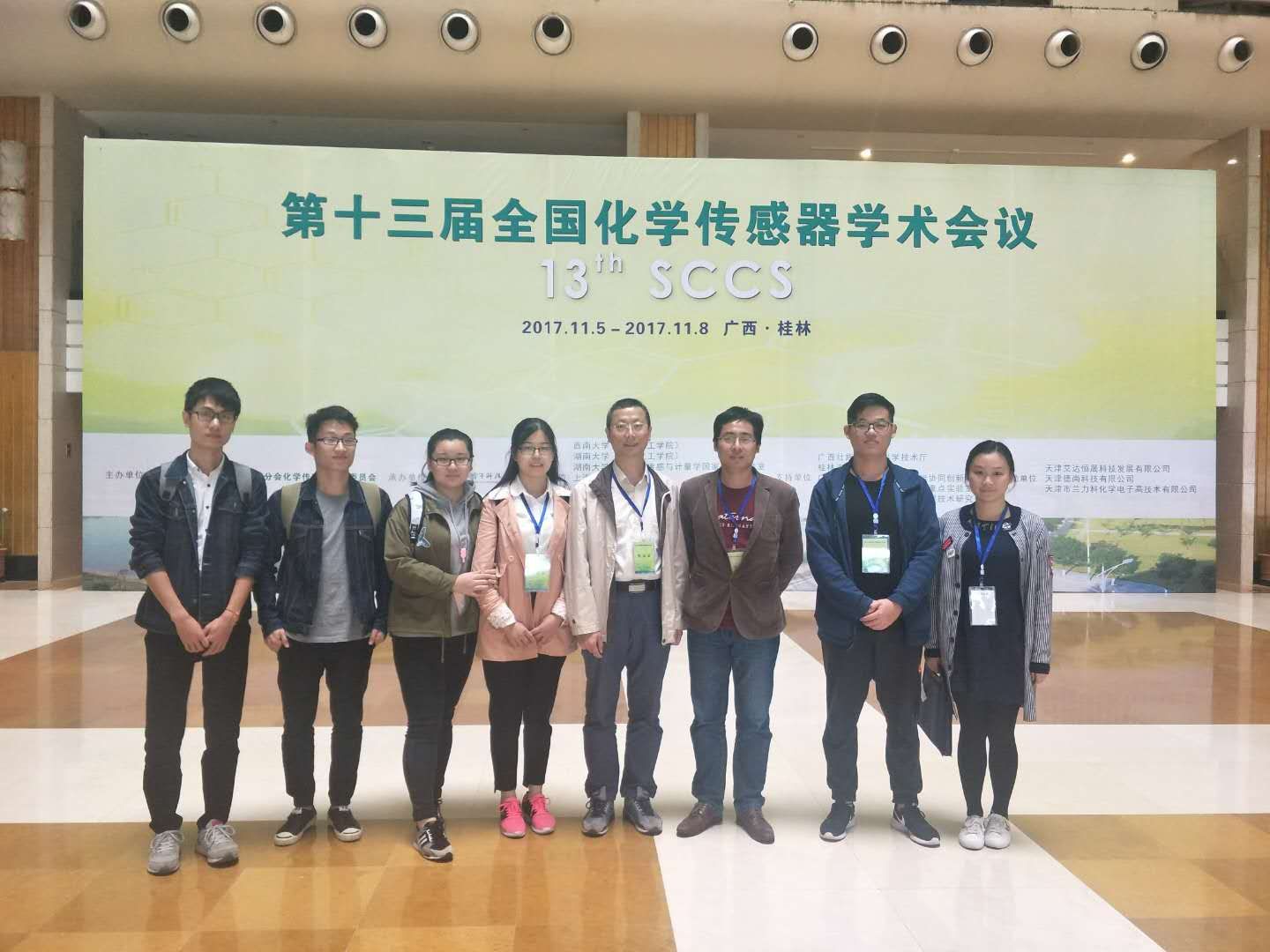 2017年11月5-8日,第十三届全国化学传感器学术会议(13th SCCS)在广西桂林召开,本次会议由中国仪器仪表学会分析仪器分会化学传感器专业委员会主办,桂林电子科技大学承办,湖南大学化学生物传感与计量学国家重点实验室、西南大学纳米材料及传感技术重庆市工程实验室、上海师范大学、江苏电分析仪器有限公司、广西师范大学和桂林理工大学等共同协办。本次会议旨在促进化学与生物传感器的学术交流与发展。必赢官网化学与生物工程学院副院长曹忠教授、杨盛博士及研究生一行八人出席了本次会议。